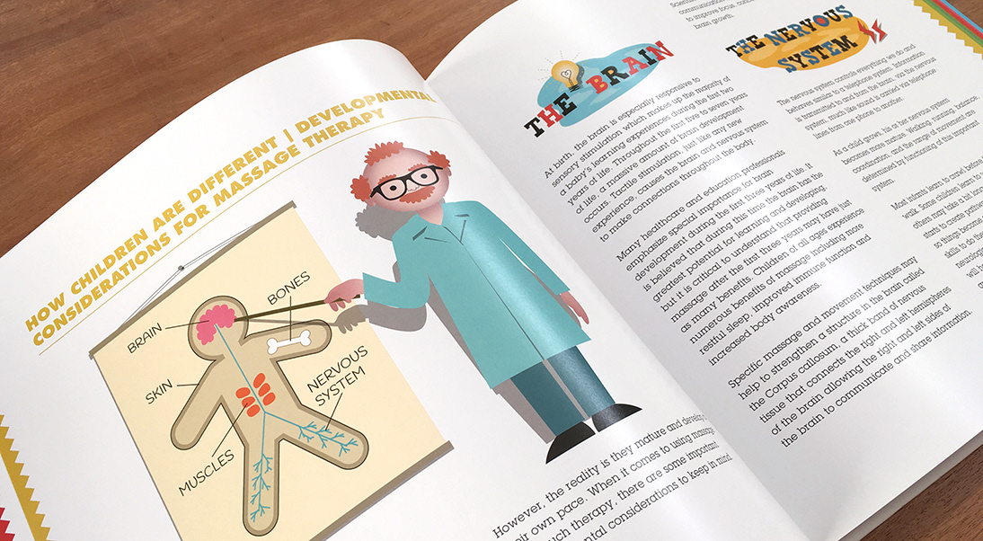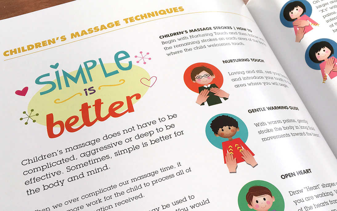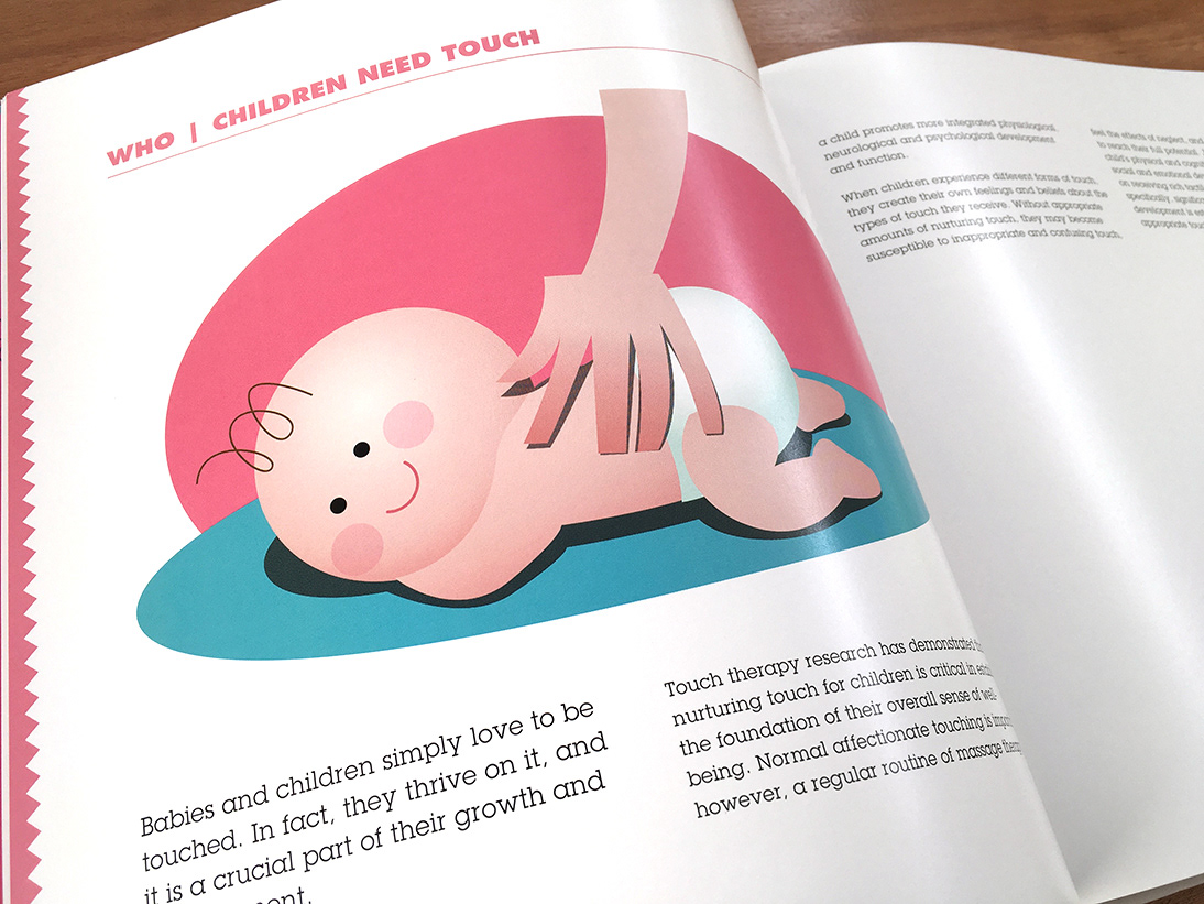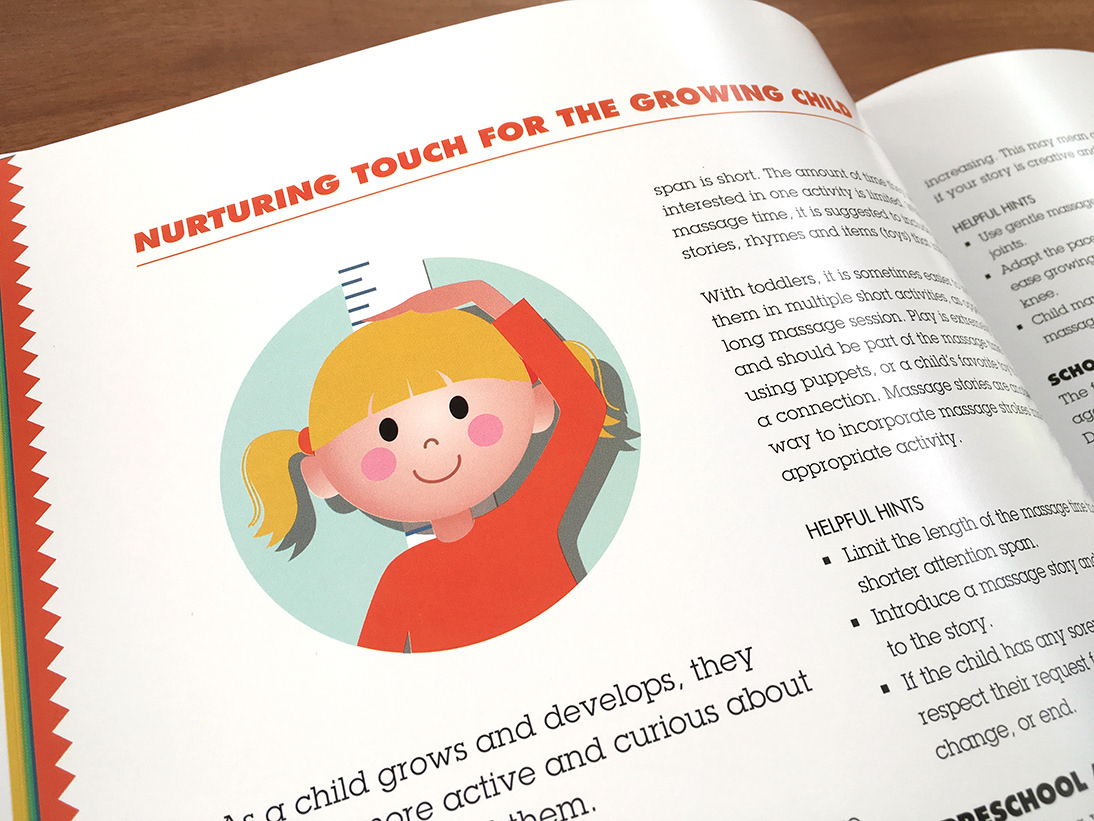 Ilustraciones para manual de masaje pediátrico escrito por Tina Allen, de Liddle Kidz®.